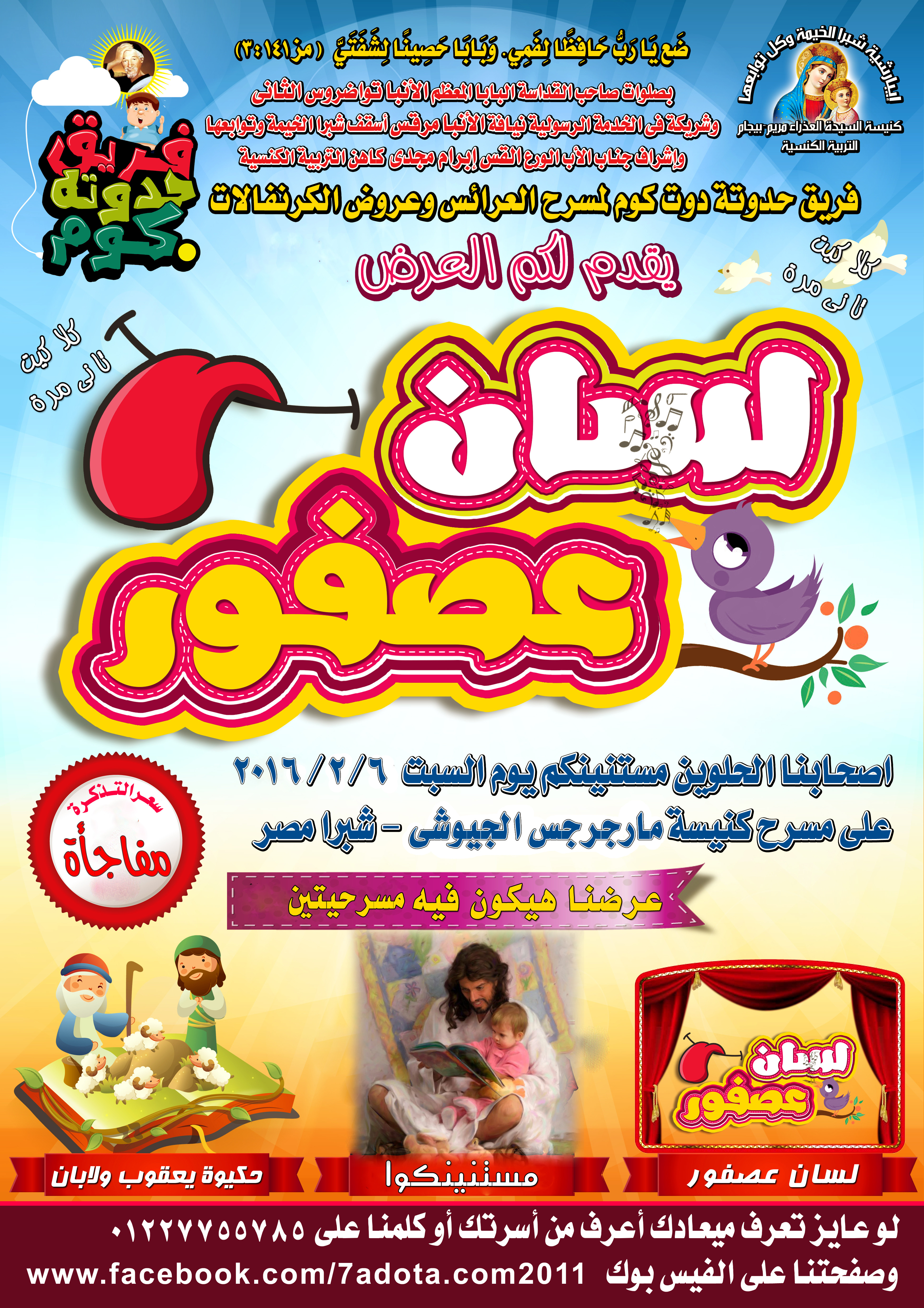 العرض الثانى عرض لسان عصفور على مسرح كنيسة الأنبا أنطونيوس بشبرا (يوليو 2015) ايضاً تم عرضه مرة أخرى فى كنيستنا (أغسطس 2015) على شكل كرنفال وكان هذا الكرنفال الرابع للفريق وكانت أول ظهور لشخصية عجيب الطيار والنجاح فى طيرانه على المسرح ولكن بشكل تقليدى وظهر تجديد واضح فى مسرح الماريونت حيث تم عرض مسرح الماريونت بعرض المسرح كله وبشكل أوبيريت منغم وكان يحكى قصة من الكتاب المقدس (حكيوة يعقوب ولابان)