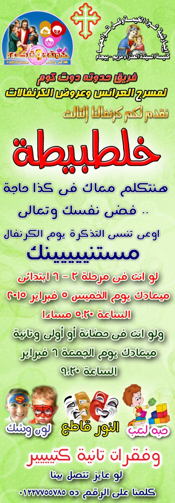 كرنفال لكنيستنا كعادة الفريق كل نصف عام كرنفال خلطبيطة (فبراير 2015)