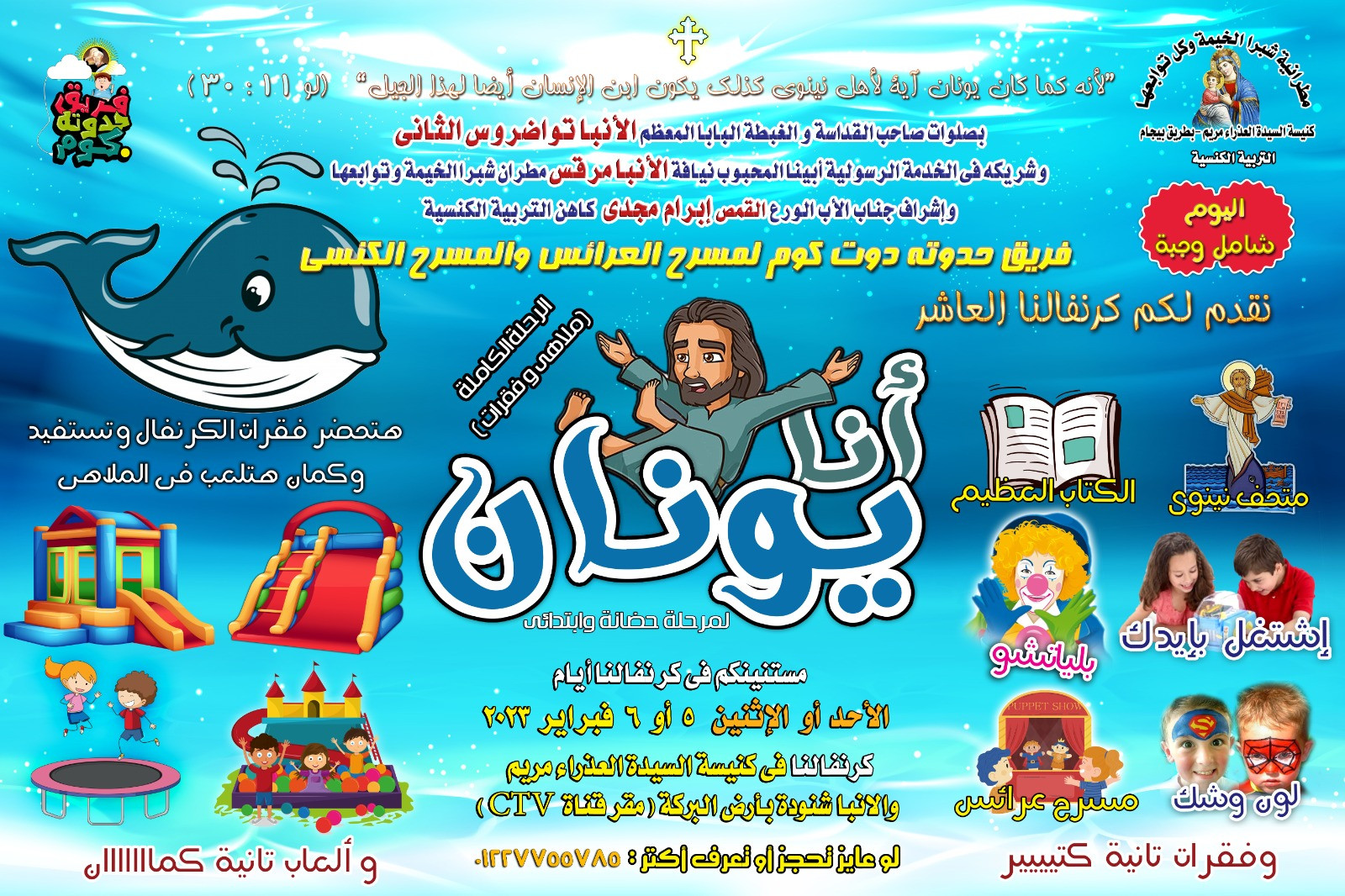 قدم الفريق الكرنفال العاشر عن صوم يونان وهدف الطاعة و قدمنا فى الكرنفال كتاب مقدس و مسرح عرايس و سير قديسين و وبلياتشو وكلهم بيخدموا نفس الهدف و فقرات ترفيهية زى ورش العمل والألعاب ومنطقة ملاهى مكونة من 6 ألعاب نفخ وخدم فى اليومسن أكتر من 100 من شباب الفريق مثال حى للالتزام و الخدمة و المحبة واصرارهم على توصيل هدف واضح برغم كل التحديات اللى كانت بتقابلهم وحضر الكرنفال أكتر من 600 طفل من 14 كنيسة مختلفة من المعادى وشبرا و شبرا الخيمة وبشتيل وعزبة النخل و النزهة الجديدة والخصوص و العبور وفيصل و اكتوبر وحلمية الزيتون وأيضا من جنوب سيناء والسويس والكرنفال كان فى كنيسة السيدة العذراء مريم والانبا شنودة بمدينة السلام أيام 5 و 6 فبراير 2023