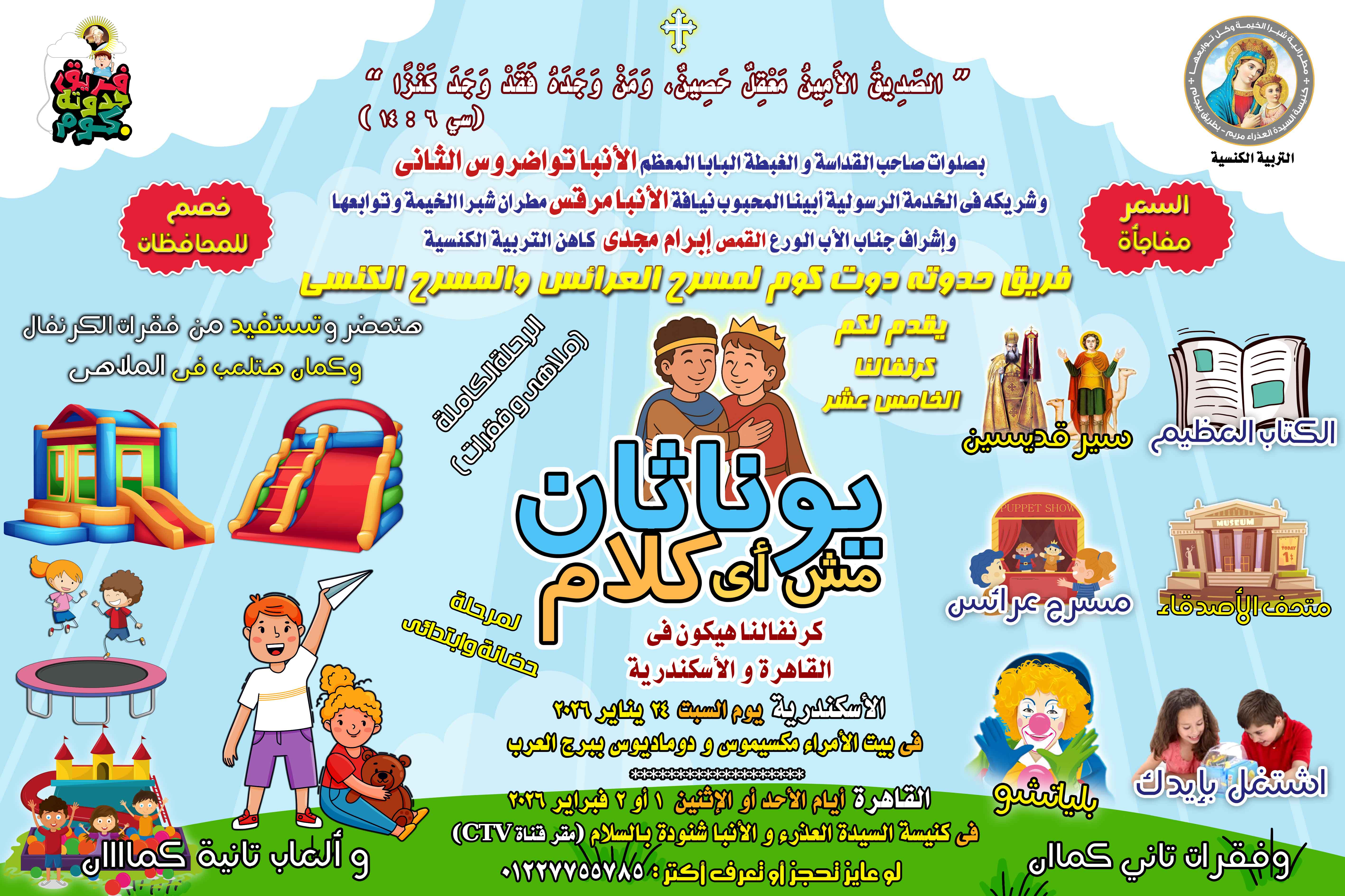 قدم فريق حدوتة دوت كوم العرض الثامن 🤗 و الرابع بالإسكندرية والكرنفال الرابع عشر بعنوان ( هاكونا متاتا 1 )🦁 بالقاهرة والإسكندرية حضر الأطفال يوم روحى وترفيهى عن مفهوم الكتاب المقدس عن الثقة و الإيمان بقوة الله فى حياتنا بالقاهرة : يوم السبت 28 يونيو 2025 بالكاتدرائية المرقسة بالعباسية ⛪ واليوم كان يحتوي علي * الجزء الأول من مسرحية هاكونا متاتا عن قصة طوبيا و الملاك * فقرة الكلاون * الترانيم الحركية * مدينة ملاهى مكونة من 5 ألعاب نفخ + ورشة عمل بالصلصال بقاعة الانبا أثناسيوس بالقاهرة🛝⚽️ حضر الكرنفال أكثر من 1100 طفل من المراحل المختلفة من 15 كنيسة من القاهرة و السويس 😍 كنيسة السيدة العذراء مريم بيجام كنيسة مارجرجس بالسويس كنيسة العذراء و البابا كيرلس اغاخان كنيسة العذراء مريم بالقصيرين كنيسة العذراء مريم و مارجرجس بأرض أيوب بشبرا كنيسة مارجرجس بالجيوشي بشبرا كنيسة العذراء ومارمينا بمدينة السلام - اسبيكو كنيسة السيدة العذراء القطامية حضانة البراعم الصغيرة كنيسة العذراء و ابو سيفين عزبة النخل كنيسة ماربولس العبور كنيسة السيدة العذراء مريم النزهة حضانة العذراء مريم بدرياس عين شمس كنيسة العذراء مريم ومارمرقس الحوامدية كنيسة الشهيدة دميانة بمدينة الأمل نورتونا و فرحنا جداً بوجودكم معانا 🥰 ================================= بالاسكندرية: يوم السبت 12 يوليو 2025 بالكنيسة المرقسية بالإسكندرية ⛪️ واليوم كان يحتوي علي * الجزء الأول من مسرحية هاكونا متاتا عن قصة طوبيا و الملاك * فقرة الكلاون * الترانيم الحركية حضر الكرنفال أكثر من 1000 طفل من المراحل المختلفة من 15 كنيسة بالإسكندرية 😍 الكاتدرائيه المرقسيه بالإسكندرية كنيسة مارجرجس بسبورتنج كنيسة الشهيد مارمينا بالمندرة السيده العذراء و البابا كيرلس عمود الدين - كليوباترا كنيسة الأنبا تكلا - الإبراهيمية كنيسة الشهيدة دميانة بالحضرة كنيسة السيدة العذراء وماربولس بكرموز كنيسة السيدة العذراء مريم بمحرم بك كنيسة السيدة العذراء مريم - سيدى بشر كنيسة الشهيد مارمينا - فلمنج كنيسة القديسين اباكير و يوحنا بابي قير كنيسة السيدة العذراء مريم - غيط العنب كنيسة الأمراء مكسيموس و دوماديوس بالعصافرة كنيسة البابا أثناسيوس بالسيوف كنيسة العذراء وبولس الرسول بالحضرة الجديدة نورتونا و فرحنا جداً بوجودكم معانا 🥰 ==================================== خدم فى اليوم بكل حب وفرح أكثر من 160 خادم و خادمة من فريق حدوتة في عرض القاهرة و اكتر من 60 خادم و خادمه في عرض اسكندرية 💪 ما بين الفقرات المختلفة و التنظيم والخدمات الأخرى❤